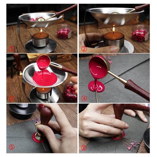 Vintage pieczęć woskowa podgrzewacz do pieca zestaw łyżek do topienia wosk topliwy