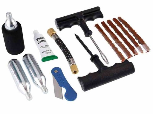 Rewelacyjny zestaw naprawczy do kołkowania opon bezdętkowych. Pozwoli na szybkie i tanie dokonanie doraźnej naprawy przebitej opony. Od razu po zakończeniu naprawy i uzupełnieniu ubytku powietrza w oponie można ruszać w dalszą drogę. Idealny do kołkowania opon samochodowych i motocyklowych.