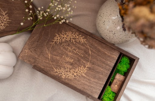 Drewniane pudełko na zdjęcia z miejscem na pendrive.Dzięki swojej unikatowości świetnie sprawdzi się również jako prezent dla bliskiej osoby.