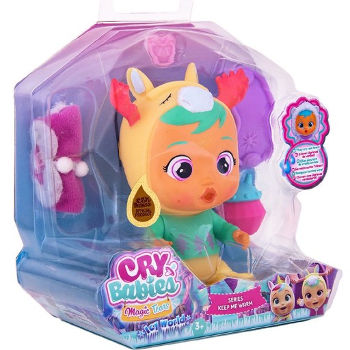 Cry Babies Magic Tears to fantastyczna kolekcja zmniejszonych klasycznych laleczek Cry Babies wraz ze spersonalizowanymi akcesoriami. Do tej pory laleczki były dostępne wyłącznie w formie "niespodzianki", dziewczynki nie miały możliwości wyboru konkretnej postaci. Teraz wychodząc na przeciw ich oczekiwaniom marka IMC Toys stworzyła linię Cry Babies Magic Tears w otwartych opakowaniach dając możliwość rozbudowania i uzupełnienia kolekcji o brakujące laleczki. Przy okazji dołączyły też całkiem nowe postaci!