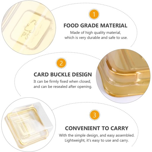 Jest to zestaw ciasta księżycowego, uchwytów na ptysie z żółtka. Może być mocno przykryty i niełatwy do upuszczenia. Materiał PET sprawia, że nie można go łatwo zdeformować. Okładka jest przejrzysta i przejrzysta. Ma dobre działanie uszczelniające, które odgrywa dobrą rolę ochronną. Uniwersalne zastosowanie do przechowywania ciasta księżycowego, ciasta francuskiego itp.