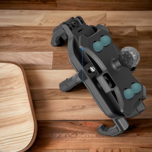 Przeguby kulowe pokryte są warstwą twardej gumy, gwarantując stabilność nawet w trudnych warunkach terenowych. To oznacza, że pozycja urządzenia nie ulegnie zmianie nawet podczas jazdy offroadowej. Uchwyt jest kompatybilny z kierownicami o średnicy od 10 do 35 mm oraz z lusterkami.