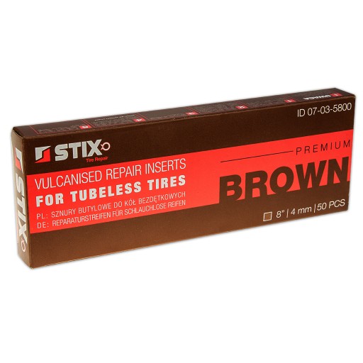 SZNURY BUTYLOWE DO NAPRAWY OPON, WĄSKIE 4 MM (8" / 200 MM, BRĄZOWE) 50 SZT. - STIX