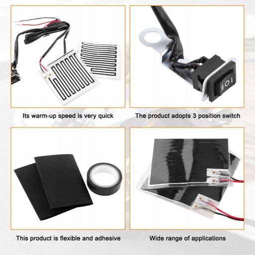 Produkt jest elastyczny i przyczepny, dzięki czemu jego podkładki mieszczą się pod uchwytami, nie powodując utraty kontroli. Ten przedmiot może utrzymać ciepło dłoni w zimne dni, a jego prędkość nagrzewania jest bardzo szybka. W produkcie zastosowano przełącznik 3-pozycyjny, dzięki czemu temperaturę można regulować w zależności od zapotrzebowania. Może pasować do wszystkich motocykli, pojazdów elektrycznych, przyczep ręcznych i tak dalej. Jeśli zimne dłonie utrudniają Ci życie w drodze, nadszedł czas, aby zaopatrzyć się w podgrzewane nakładki na uchwyty, które ogrzeją Twoje dłonie.