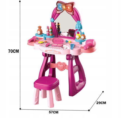 Urocza toaletka z prawdziwym lustrem, podświetlaną kokardą z melodiami i bezdotykowym włącznikiem!