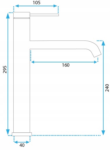 - Zasięg wylewki: 160 mm