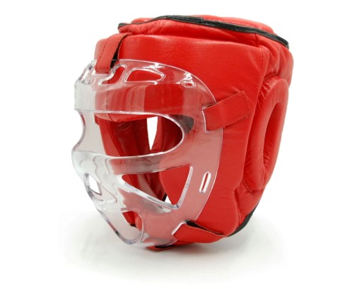 Kask z kratą (maską) z tworzywa termoplastycznego, wykonany z wysokiej jakości skóry syntetycznej, wypełniony wysokiej gęstości pianką, która doskonale tłumi ciosy. Maksymalnie zabudowany, chroniący kości szczęki i policzkowe.