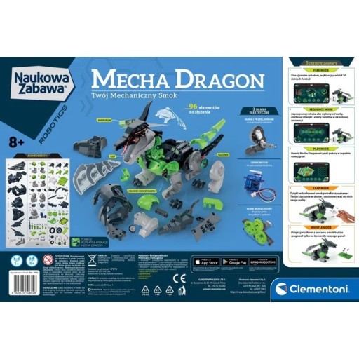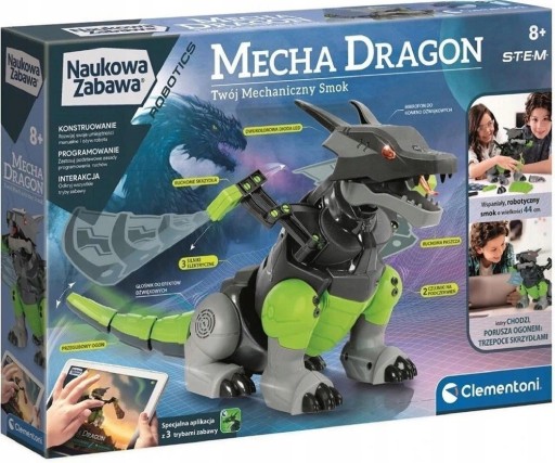 Mecha Dragon z serii Clementoni Naukowa Zabawa, to mechaniczny robot do samodzielnego złożenia i zaprogramowania.