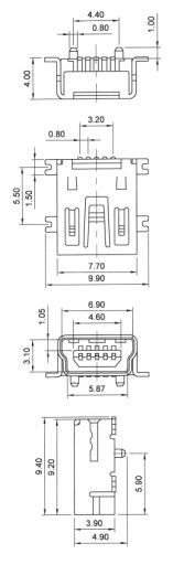 GNIAZDO USB TYP-B MINI SMD 2 -SZTUKI
