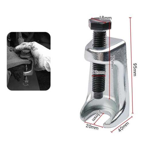 Struktura: Wykonany z wysokiej jakości stalowego korpusu i śruby dociskowej, końcówka śruby dociskowej obraca się w stronę narzędzia i sworznia drążka kierowniczego.