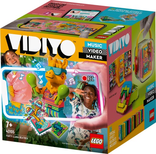 - Zestaw LEGO® VIDIYO™ Party Llama BeatBox (43105) pomoże Ci zachęcić dzieci do tworzenia własnych teledysków. Znajdziesz w nim minifigurkę lamy, akcesorium w postaci marakasów, 14 losowych BeatBitów i dwa specjalne BeatBity.