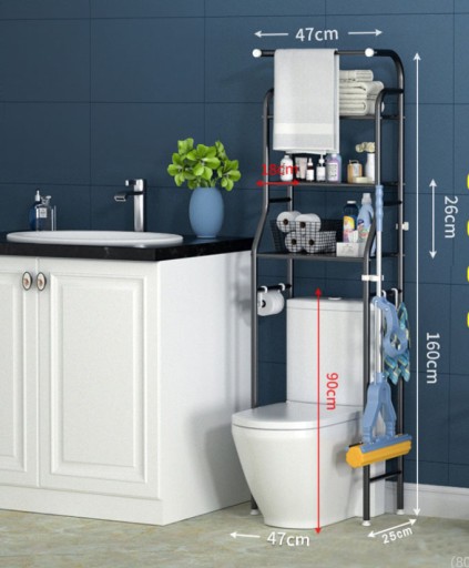 PÓŁKA NAD WC STOJAK 3-poziomowy regał nad WC będzie świetnym rozwiązaniem, aby stworzyć dodatkową przestrzeń w małej łazience lub pralni.