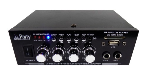 Wzmacniacz posiada wejście USB i SD dzięki czemu odtwarzać możemy pliki z muzyką w formacie mp3.