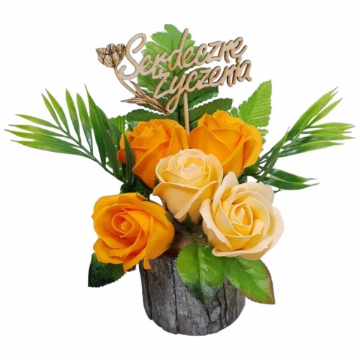 Na sprzedaż oferujemy kompozycję kwiatową - bukiet z kwiatami mydlanymi, które nie tylko udekorują wnętrze, ale również zapełnią je delikatnym i przyjemnym zapachem. Kompozycja została wykonana z wysokiej jakości materiałów, co gwarantuje trwałość i estetyczny wygląd.