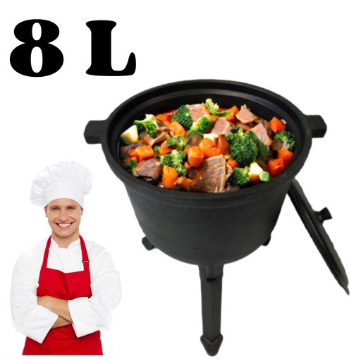 ✅ Kociołek Żeliwny Rycerz 8L Stojący Garnek Myśliwski Na Ognisko Grill ZESTAW