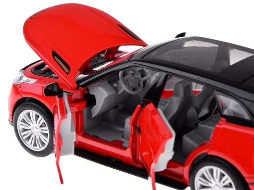 Auto Range Rover Velar w skali 1:32 będzie świetnym uzupełnieniem kolekcji modeli samochodów. SUV został bardzo starannie i estetycznie wykonany z dbałością o najmniejsze szczegóły co zapewne zachwyci każdego małego kierowcę. Autko posiada otwierane drzwi, maskę i bagażnik a także efekty dźwiękowe i świetlne. Przez szyberdach dokładnie widać wnętrze pojazdu, które zostało wykonane z naciskiem na detale. Range Rover posiada napęd typu friction power, czyli po cofnięciu go po gładkiej, równej powierzchni pomknie przed siebie. Samochód działa również na popych.