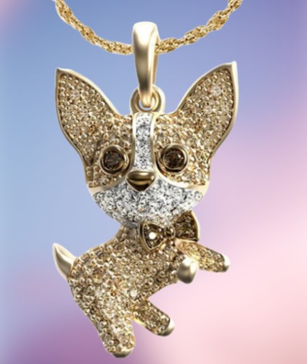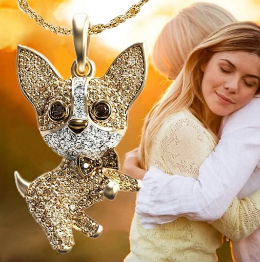 Naszyjnik Piesek Chihuahua, Cyrkonie, Kolor Złoty