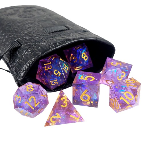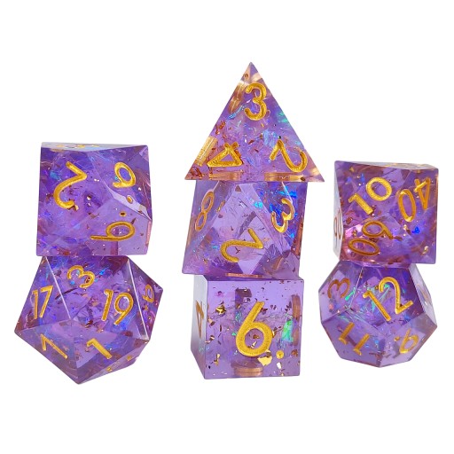 Komplet kości, czyli siedem wysokiej jakości kostek. Dzięki odpowiedniemu wyważeniu są bardzo wygodne w użyciu.