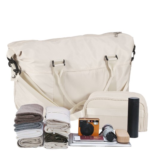 ДОРОЖНАЯ СУМКА ЖЕНСКАЯ С КОСМЕТИЧКОЙ, БЕЖЕВАЯ СПОРТИВНАЯ