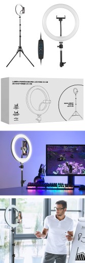 LAMPA PIERŚCIENIOWA 2700-7000K RING 30CM STATYW 210CM YOUTUBE TIK TOK VLOG