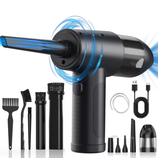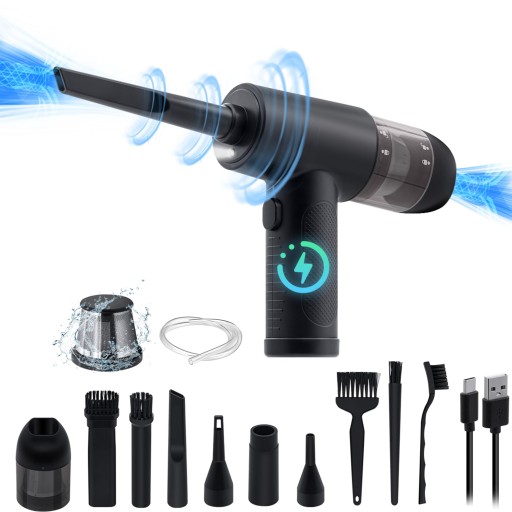 - W zestawie 6 różnych wymiennych końcówek i szczotek. Dyszę i szczotkę można wymieniać w razie potrzeby, idealnie nadaje się do czyszczenia kurzu, włosów i brudu z sof, dywanów, biurek, laptopów, klawiatur i nie tylko, dzięki czemu jest łatwy w użyciu w samochodzie, domu i biurze.