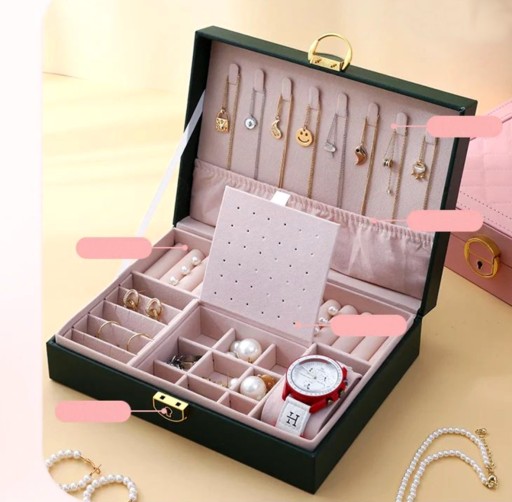 ✅ Dzięki różnym przegródkom i szufladkom, będziesz miała możliwość rozmieszczenia biżuterii według własnych preferencji. Przyda się zarówno do przechowywania kolczyków, pierścionków, jak i naszyjników.