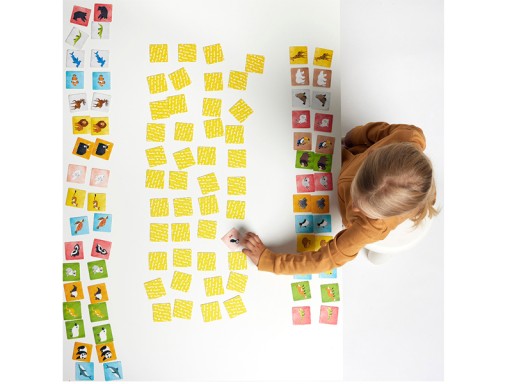 Płytki wykonane są z trwałego i solidnego materiału, a dzięki zaokrąglonym rogom są bezpieczne dla dzieci. Możecie zagrać w klasyczną grę pamięciową i szukać własnych obrazków spomiędzy wszystkich lub wyselekcjonowanych par. Wybierzcie je według własnych kryteriów, na przykład koloru tła lub rodzaju zwierząt. Możecie dla zmyłki wprowadzić do rozgrywki kilka zwierzaków bez pary. Zagrajcie na czas: ułóżcie elementy obrazkami do góry i szukajcie par, doskonaląc spostrzegawczość i refleks.