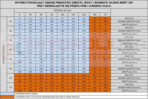 CHŁONNOŚĆ: 250cm3/obr ; WAŁEK: 25mm ; OBROTY: 240obr/min