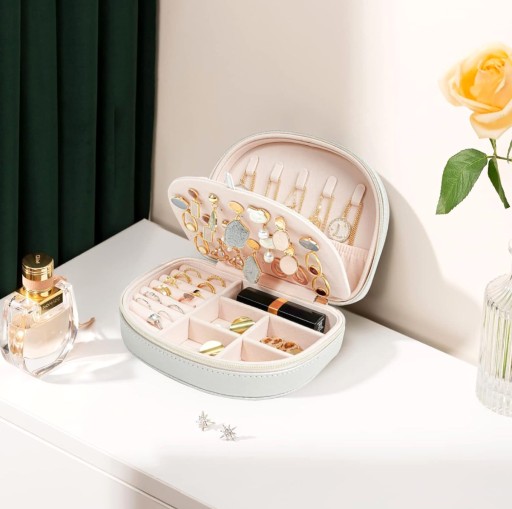 ✅ Ten futerał na biżuterię to również doskonałe rozwiązanie na podróż. Kompaktowe wymiary pozwalają na łatwe spakowanie do walizki lub torebki.