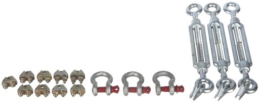Komplet odciągów do wykonania pierwszego poziomu odciągowego dla konstrukcji wieloelementowych wykonanych z segmentów MK-1.5. Odciągi są przeznaczone do montażu pomiędzy 4 a 5 elementem kratowym.