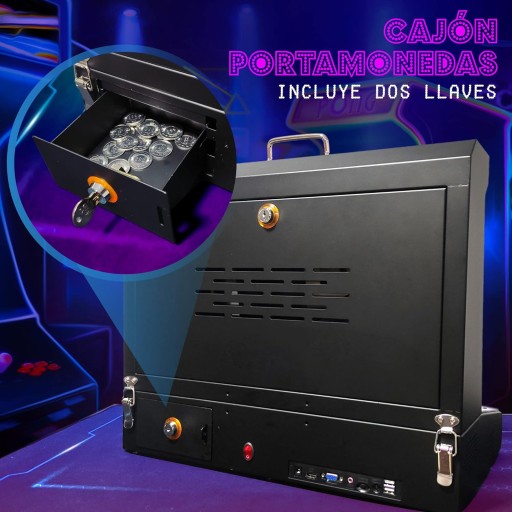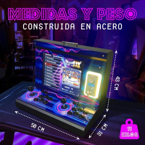 Marzenie nastolatka wreszcie spełnia ten fantastyczny projekt typu Bartop Arcade aby cieszyć się najbardziej zapamiętanymi grami z naszego dzieciństwa, aby cieszyć się w trybie portfela z monetami, albo w trybie wolnym bez monet, który pozwala na opcję zapisywania gry