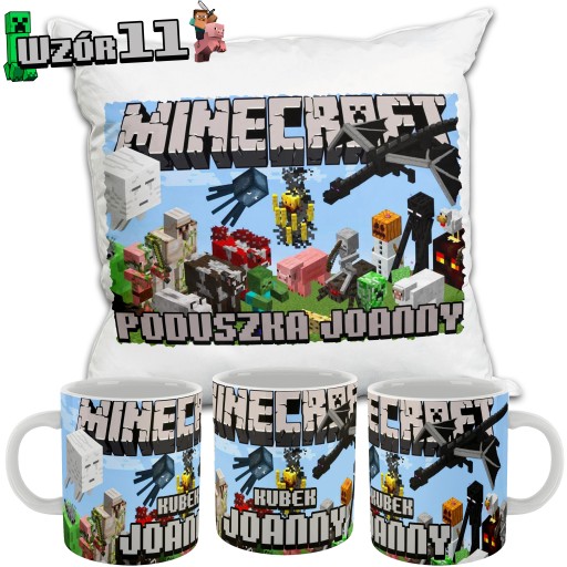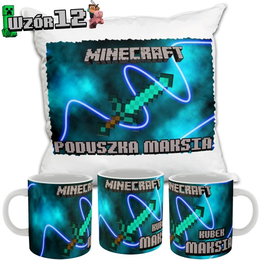 ZESTAW KUBEK PODUSZKA MINECRAFT MINER NADRUK IMIĘ KSYWKA