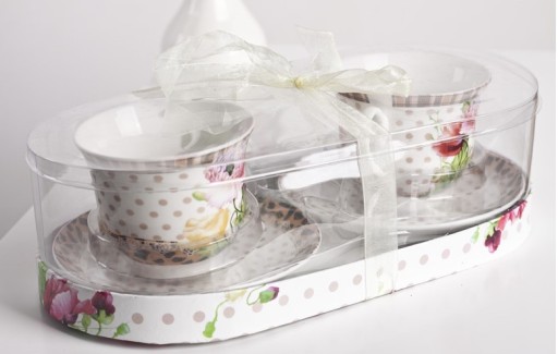 Filiżanki są zapakowane w eleganckie pudełko eksponujące zestaw i zawiązane są kokardką - idealnie nadają się na wyjątkowy prezent.