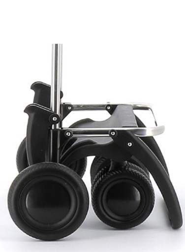 - Praktyczna, składana podpórka do postawienia wózka w miejscu, po złożeniu podpórki wózek można złożyć na płasko dzięki czemu zajmuje mniej miejsca