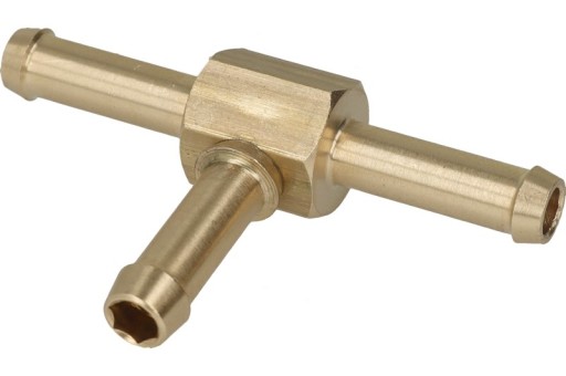 Trójnik do podciśnienia T 5x5x5 mosiądz - stosowany w samochodowych instalacjach gazowych do łączenia przewodów podciśnieniowych, np. w celu podłączenia czujnika ciśnienia instalacji gazowej lub reduktora.