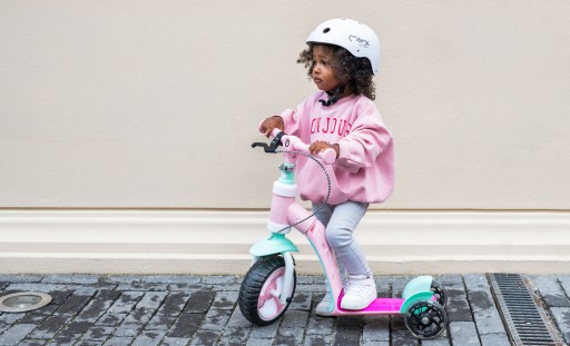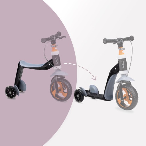 Dzięki odpowiedniemu rozłożeniu kół i wyważeniu hulajnogi, pojazd jest doskonale zbalansowany. Szeroko rozmieszczone tylne koła sprawiają, ze pojazd jest stabilny, co minimalizuje możliwość upadku. Jest to szczególnie ważne w przypadku Dzieci, które dopiero zaczynają swoją przygodę z hulajnogą. Kiedy Dziecko znudzi się jazdą na hulajnodze, jednym ruchem ręki możesz zamienić ją w jeździk.