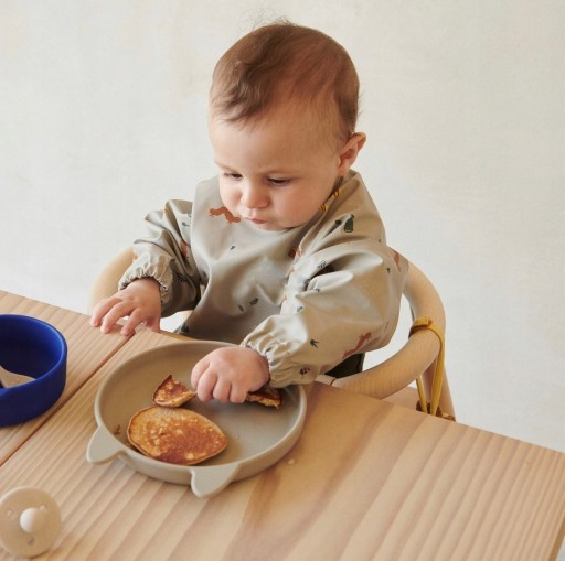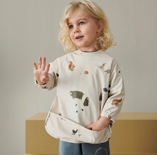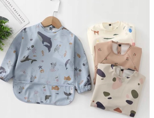 Całość zachowana w stonowanych kolorach i eleganckim wykonaniu. Skutecznie ochroni ubranie dziecka przed zabrudzeniem. Śliniak jest łatwy w utrzymaniu czystości, wystarczy po posiłku przetrzeć go wilgotną szmatką.