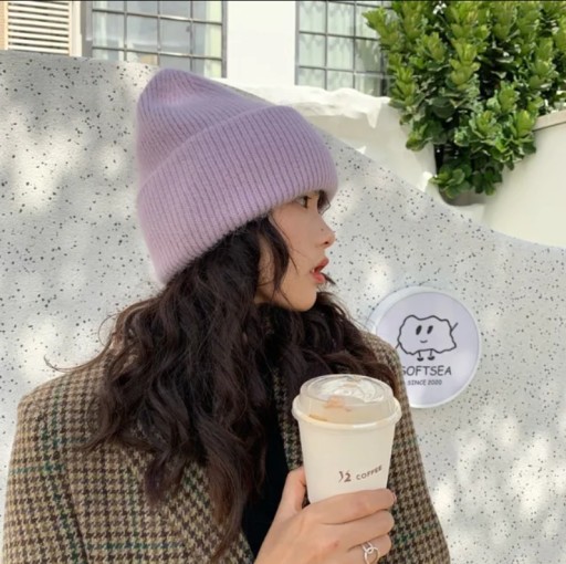 CZAPKA DAMSKA ZIMOWA GRUBA CIEPŁA MIĘKKA JASNY FIOLET ANGORA