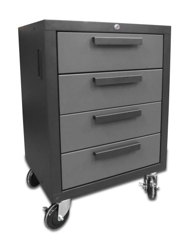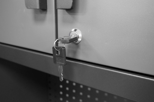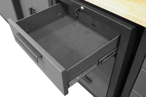Wszystkie szuflady oraz szafki są zamykane na klucz, co zapewnia bezpieczeństwo przechowywanych narzędzi. Magnetyczne zatrzaski do drzwi ułatwiają otwieranie i zamykanie, jednocześnie trzymając drzwi w pewnym położeniu.
