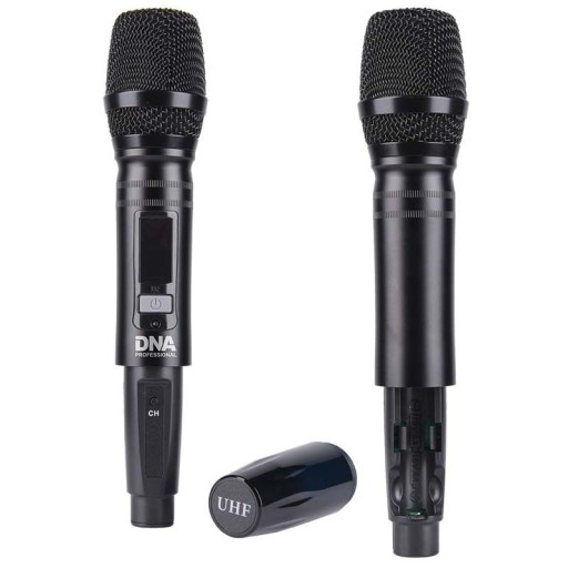 W zestawie z mikserem dźwięku DNA znajdują się 2 dynamiczne mikrofony bezprzewodowe z włącznikiem i wyświetlaczem LCD pokazującym aktualny kanał, częstotliwość pracy i stan naładowania baterii. Każdy z nadajników zasilają 2 baterie 1,5-woltowe typu AA, które zapewniają mikrofonom nawet do 6 godzin pracy. ✅ Duży zasięg, szerokie pasmo przenoszenia oraz długi czas pracy sprawiają, że idealnie sprawdzają się w każdej sytuacji.