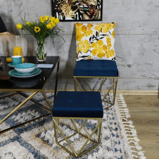 Siedzisko Java S/2 Niebieski welur stelaż z stali malowanej proszkowo na kolor złoty Wymiary: L: 40x40x45cm S: 32x32x38,5cm