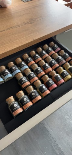 każda przyprawa jest łatwo dostępna i widoczna. Koniec z przeszukiwaniem szuflad w poszukiwaniu tej jednej potrzebnej przyprawy. Teraz każdy słoiczek jest na wyciągnięcie ręki, uporządkowany i gotowy do użycia.