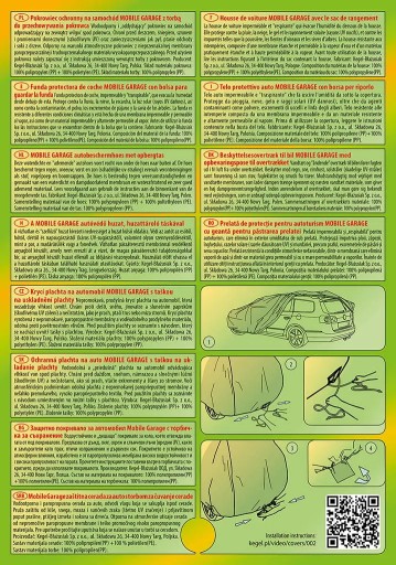 - Plandeka wykonana jest z materiałów wysoce odpornych na szkodliwe dla lakieru samochodowego promienie słoneczne (UV) i inne czynniki atmosferyczne.