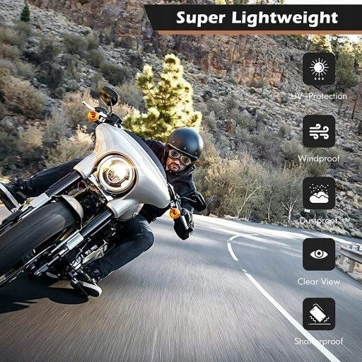 Wiatroszczelna i pyłoszczelna: przyjęto soczewkę PC, która ma szerokie pole widzenia i wyraźne pole widzenia. Może uniknąć silnego wiatru i różnych oślepiających świateł. Jest wodoodporny, pyłoszczelny i wytrzymały, dzięki czemu jazda motocyklem jest bezpieczniejsza.