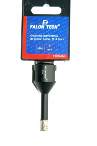 Diament w otwornicach FALONTECH FT08M14 osadzony jest metodą lutowania próżniowego. Oznacza to, że drobiny diamentu zatopione są w materiale. Nie są to otwornice pokryte diamentem tylko z wierzchu. Dzięki temu koronki FALONTECH odznaczają się ogromną żywotnością, a także są odporne na wysoką temperaturę - można nimi pracować na wysokich obrotach szlifierki, na sucho.