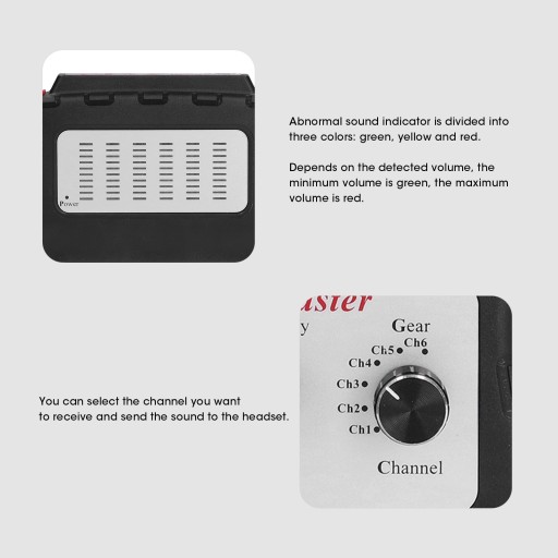 5. Łatwa obsługa: sześciokanałowa konstrukcja, synchronizacja akustyczno-optyczna, proste i wygodne słuchawki, a głośność można dowolnie regulować, można wybrać kanał, który chcesz odbierać i wysłać dźwięk do zestawu słuchawkowego.