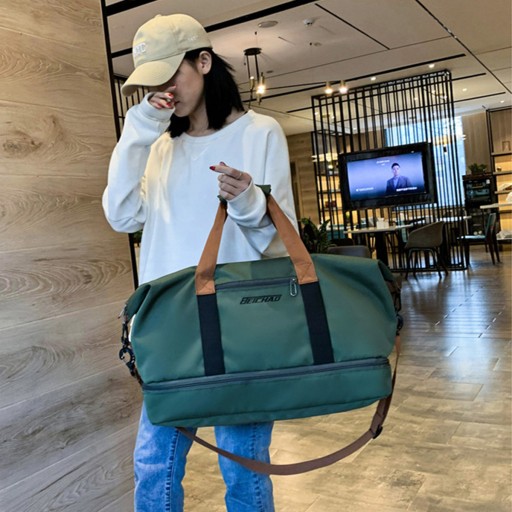 Dno torby zaprojektowano z kieszenią zapinaną na zamek, służącą do przechowywania butów i oddzielania ich od ubrań, aby uniknąć bałaganu.