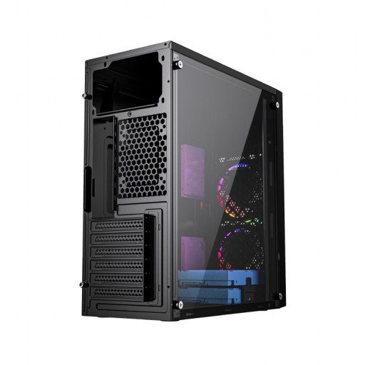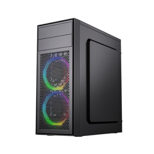 Obudowa komputera wyposażona jest w dwa wentylatory z oświetleniem RGB na stylowym panelu przednim, szklany panel boczny umożliwia obserwację zamontowanych komponentów.