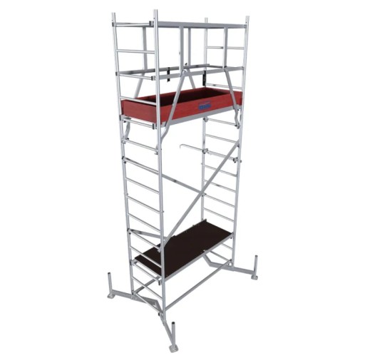 - Wchodzenie od wewnętrznej strony rusztowania jest bezpieczne dzięki antypoślizgowym, profilowanym szczeblom zamontowanym na ramie pionowej.
