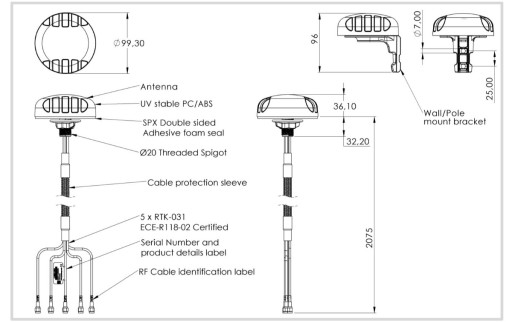 - Solidna, wandaloodporna i wodoodporna obudowa anteny (klasa IP 68)